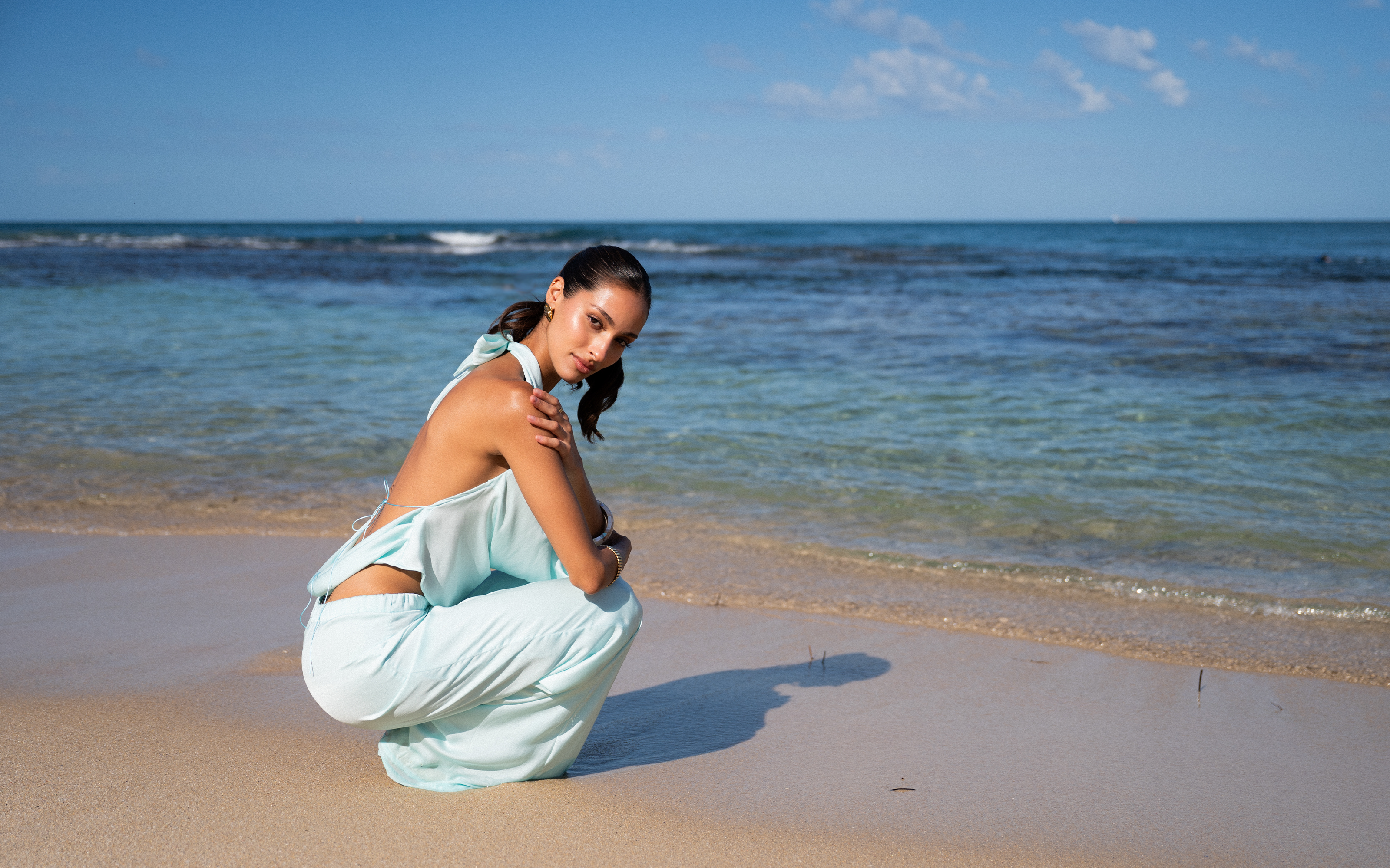 TWIST BANDEAU | BABY BLUE POLKA