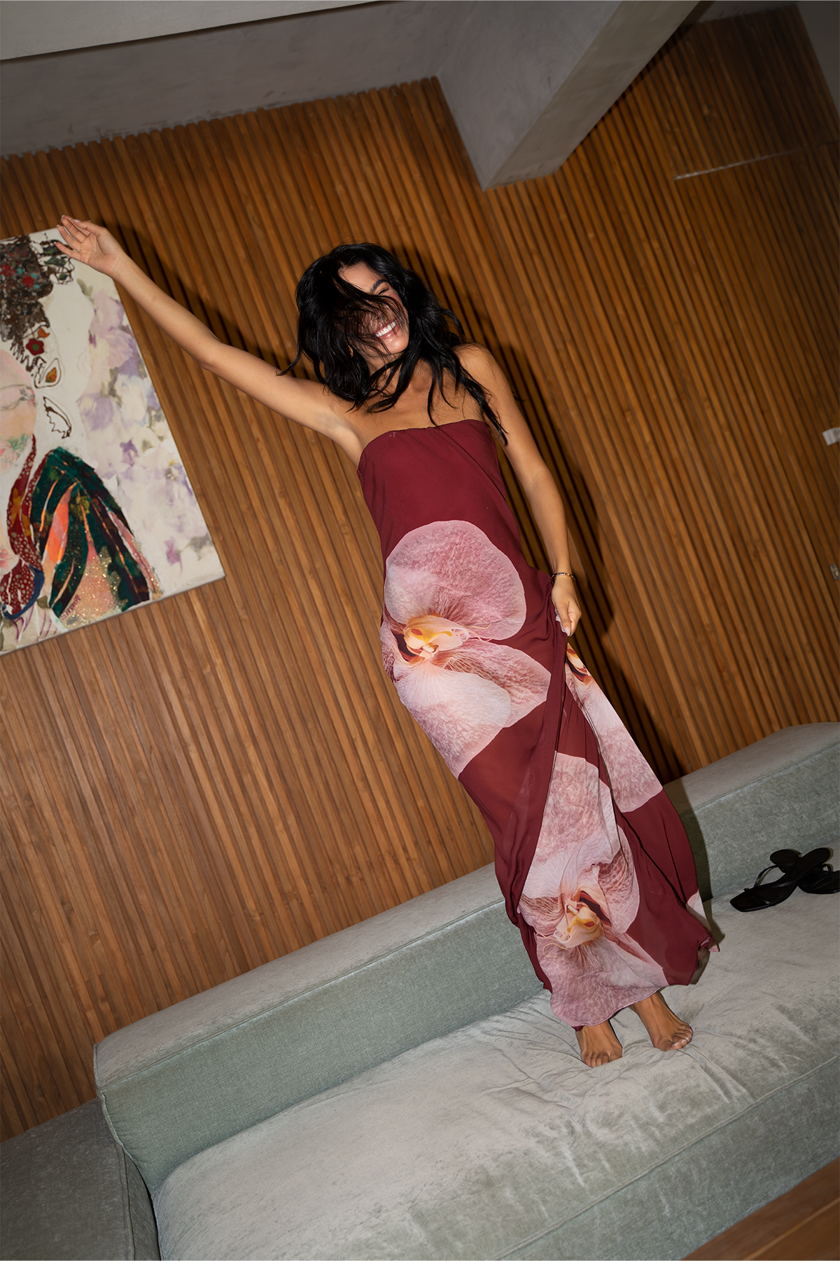 Introducing Inka, a captivating and unique gown that seamlessly combines elegance and personal style. The flattering bodice of Inka showcases intricate ruched detailing, skillfully crafted to enhance and contour the bust. This design embodies a perfect balance of boldness and timeless sophistication.