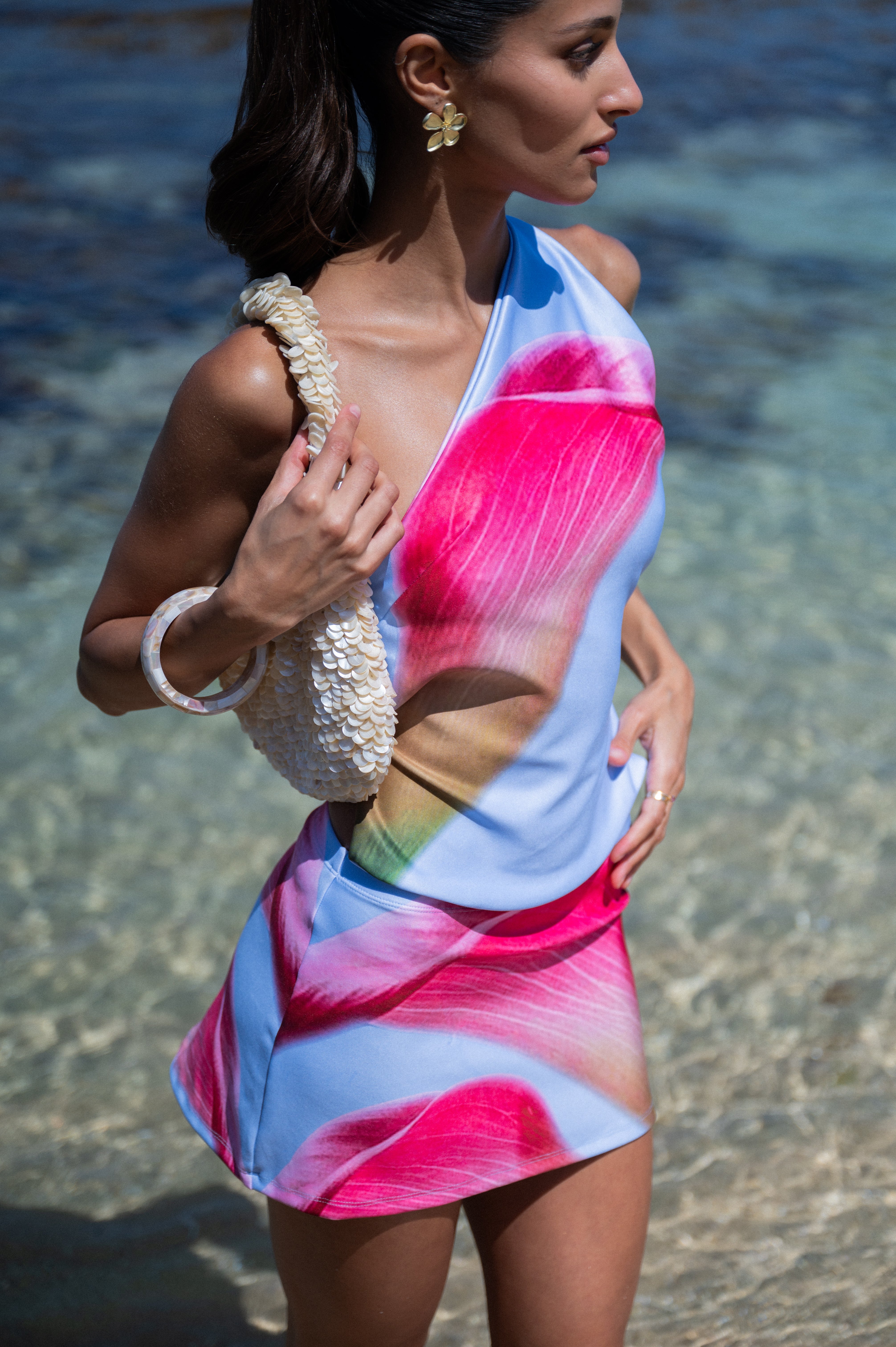 Discover the epitome of resort wear sophistication with HNTR the label's Sam top. Embrace backless elegance, delicate ties, and our custom print that elevates your ensemble. Immerse yourself in the flattering fit and unique design details that complete the set with the matching Sam skirt. Elevate your wardrobe with our elevated basics and stand out in style